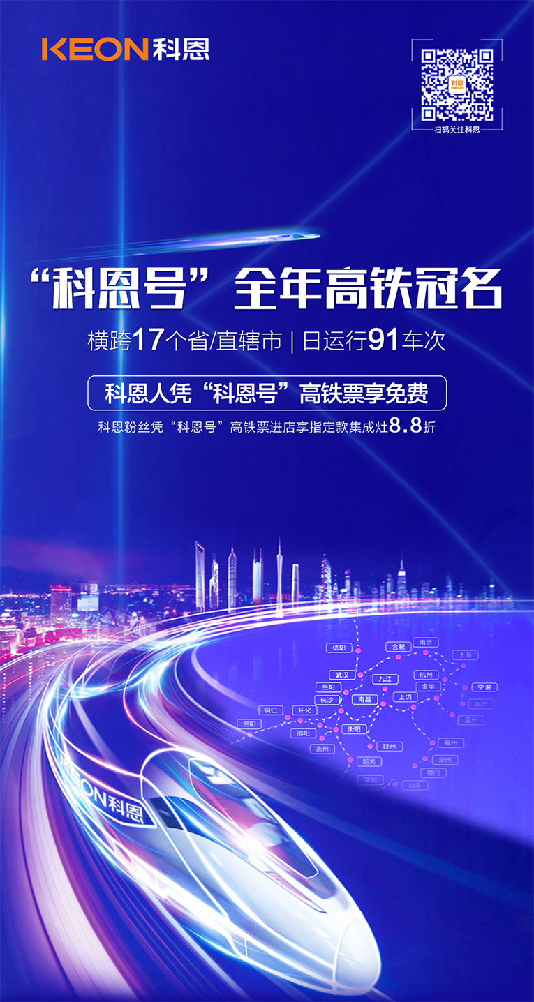一列列品牌冠名高鐵縱橫馳騁,匯集了來(lái)自全國(guó)各地人群,產(chǎn)生著強(qiáng)大的品牌引領(lǐng)效應(yīng)。集成灶十大品牌、廚電行業(yè)十大品牌“科恩號(hào)”高鐵專(zhuān)列正式運(yùn)行,橫跨17個(gè)省/直轄市,日運(yùn)行91車(chē)次!科恩集成灶啟動(dòng)全年高鐵冠名,通過(guò)中國(guó)高鐵完善的平臺(tái)搭建,實(shí)現(xiàn)渠道共享,與品牌進(jìn)行無(wú)縫嫁接,成功開(kāi)啟輻射全國(guó)的品牌戰(zhàn)略布局,將品牌觸角延伸至高鐵,借助高鐵國(guó)家名片屬性為品牌權(quán)威背書(shū),傳遞至大江南北,讓“集成灶就選科恩大吸力”口號(hào),借助高鐵速度、廣度以及深度,更精準(zhǔn)地推向全國(guó)市場(chǎng)!